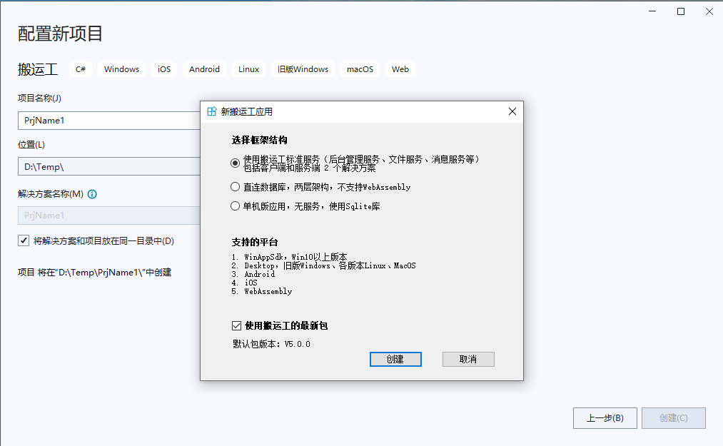 ,客户端解决方案涉及多平台统一,项目生成时包含对所有目标框架的生成,生成过程比较慢,运行前设置 PrjName1