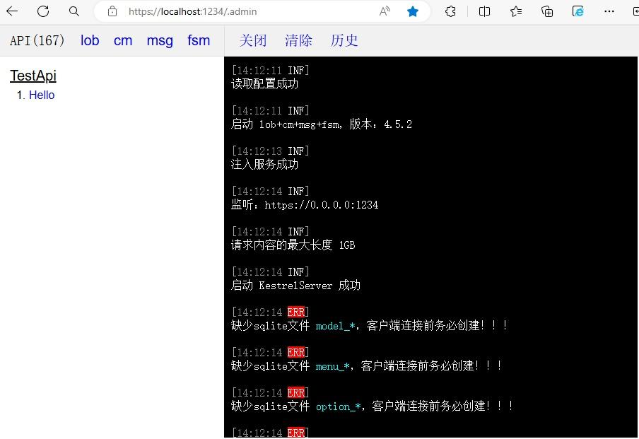 ctrl + F5 启动服务,自动打开 https://localhost:1234/.admin 页面: